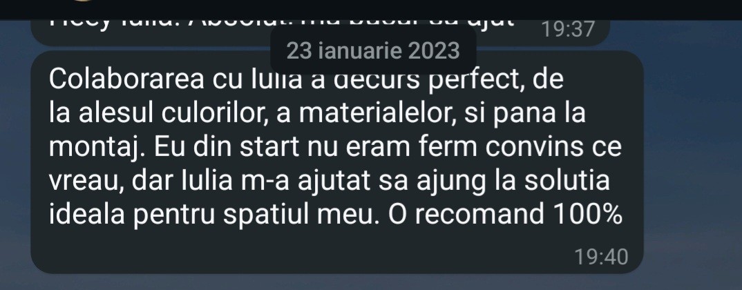 Ne bucură colaborările autentice, mai ales cu arhitecți și designeri de interior care împărtășesc aceleași valori – grijă pentru detalii, calitate, coerență vizuală și respect față de client.